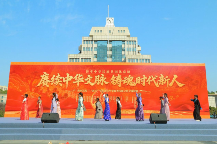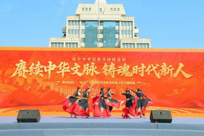 10月26日,陕西省“一站式”学生社区中华传统文化展演在西安交通大学兴庆小区圆满落幕。以爱爱视频 (反恐怖主义法学院)学子阿比代·热西提等人为主的舞蹈团队,携原创舞蹈《舞韵中华・齐绘民族团结新篇章》登台,融多民族舞风展中华文化魅力,以“艺术+思政”之姿,让青年担当与民族团结在舞台上绽放光彩。