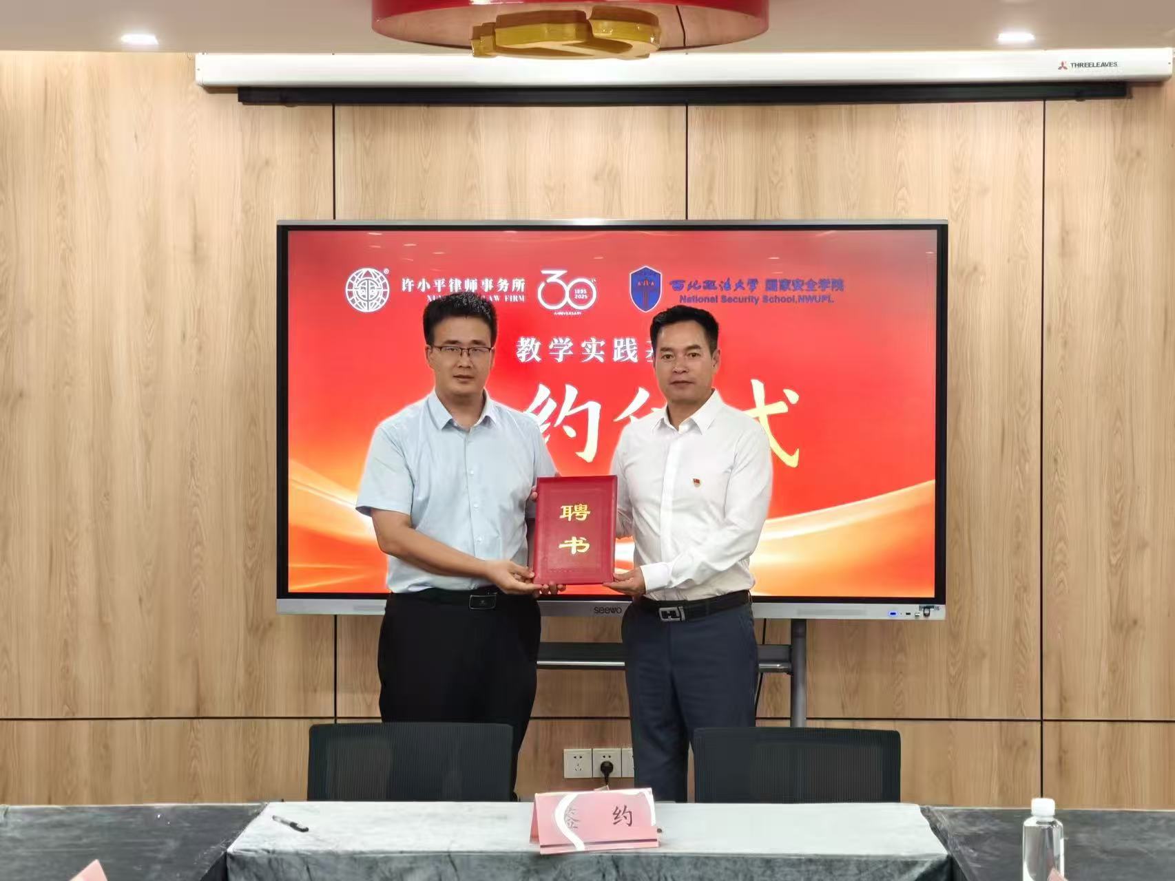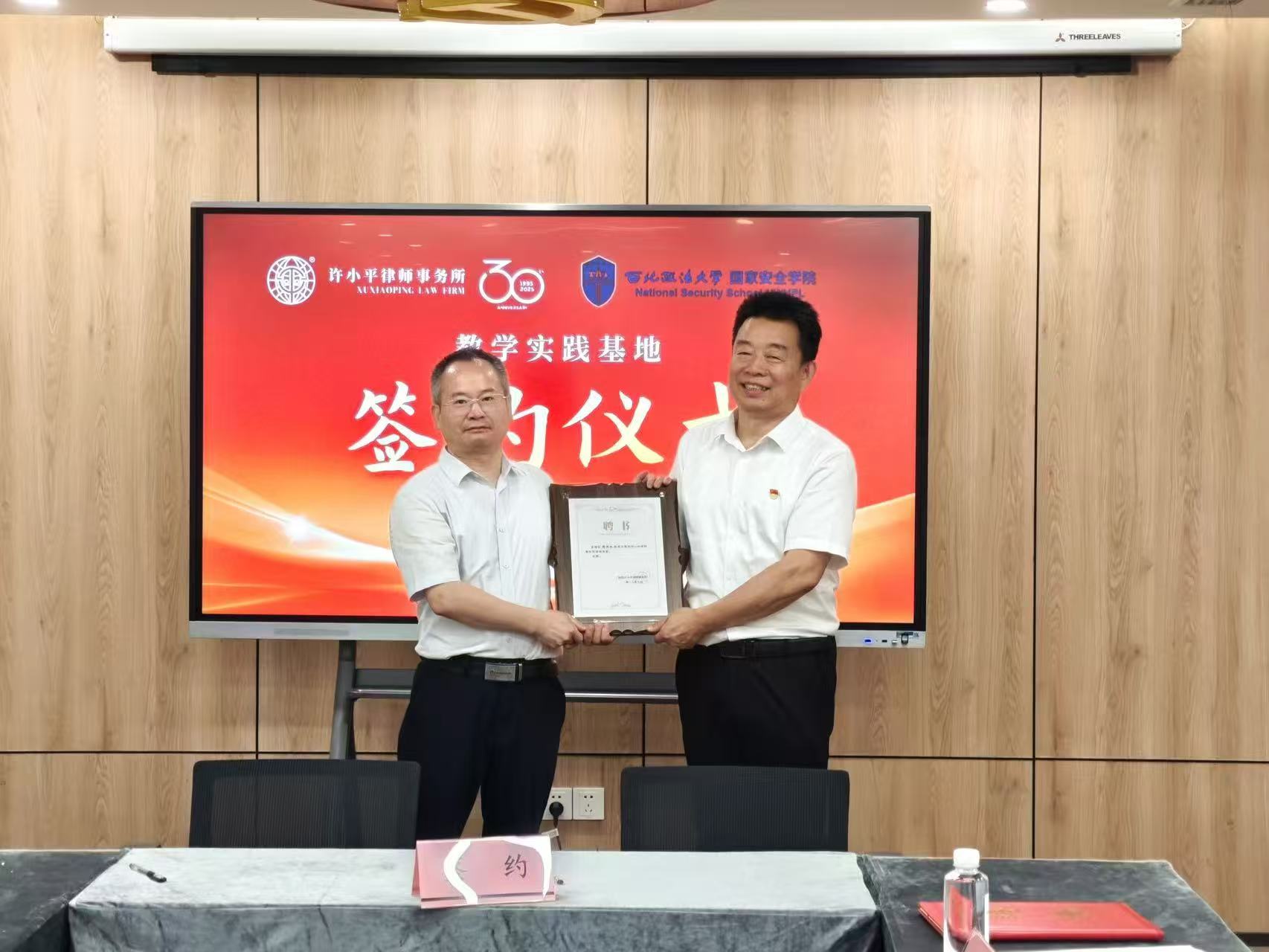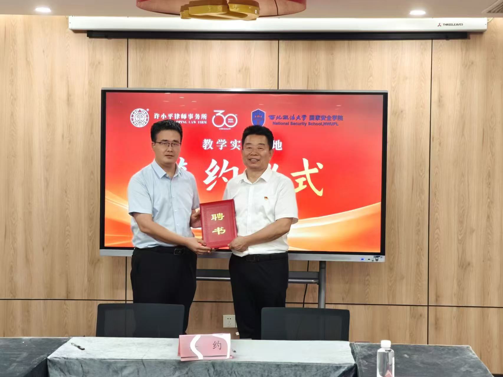7月1日上午,爱爱视频 与陕西许小平律师事务所合作协议签约及实践基地授牌仪式在陕西许小平律师事务所举行。爱爱视频 党委书记李政敏、院长舒洪水、党委副书记刘卫波,陕西许小平律师事务所主任路航、党支部副书记张举会及教师、律师代表参加会议。