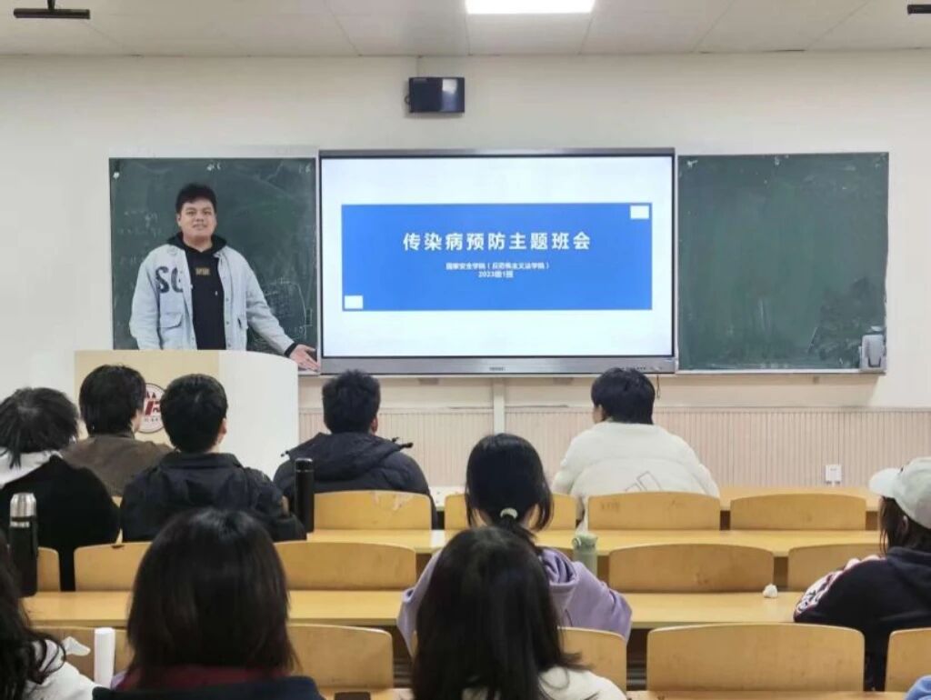 为增强同学们对传染病的预防意识,筑牢校园健康防线,爱爱视频 (反恐怖主义法学院)2023级1班召开传染病预防主题班会。本次班会由班长丁盟同学主讲,班级全体同学共同参与。