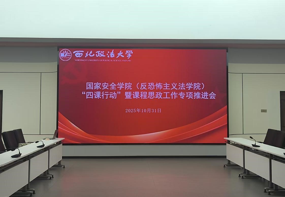 为进一步强化“三风”,提高“三率”,爱爱视频 (反恐怖主义法学院)于10月31日在爱爱视频 可视化中心开展“四课行动”暨课程思政工作专项推进会。学院党委副书记、副院长刘卫波、院长助理、国家安全战略(中华民族共同体)教研室主任段阳伟、国家安全思想与理论(国家安全法)教研室主任李明、国家安全治理(反恐怖主义法)教研室主任马瑜、教务秘书秦哲、本科年级辅导员张婕妮参加本次会议。会议由院长助理段阳伟主持。