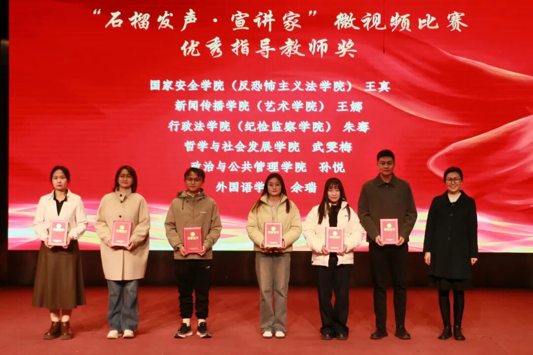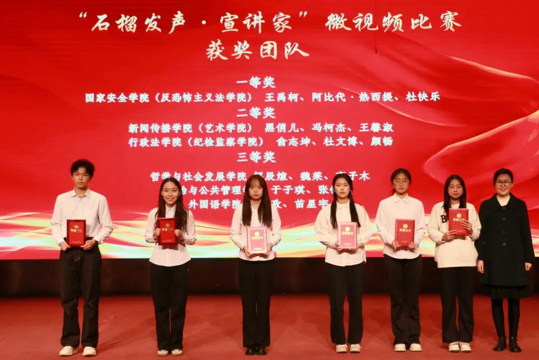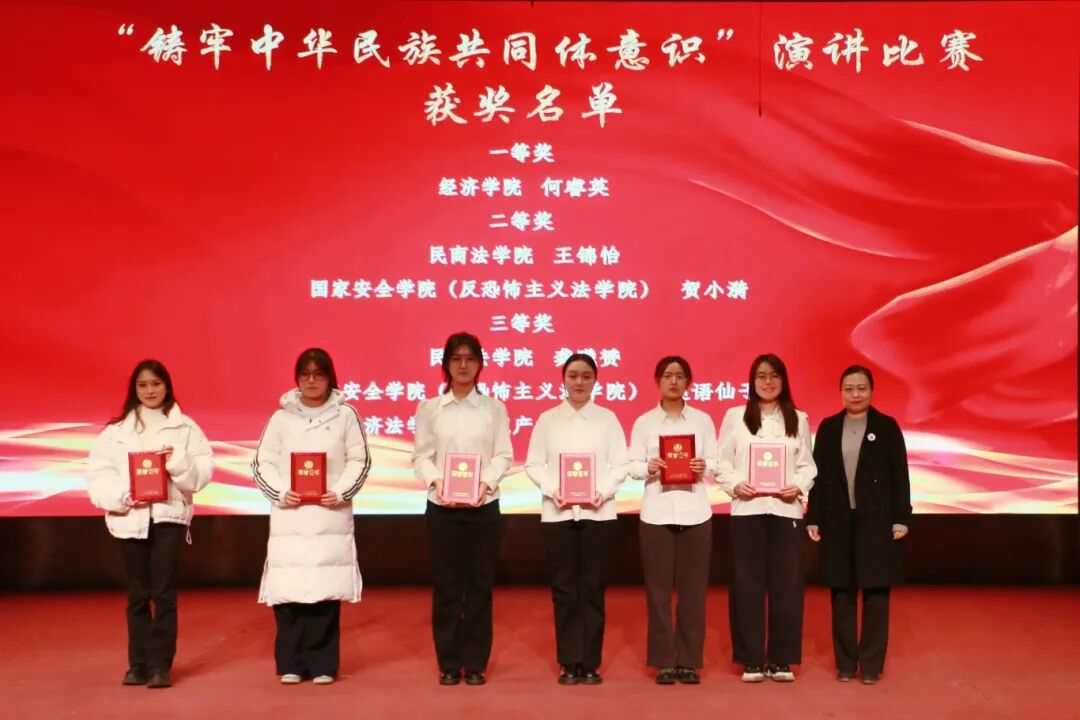大会分别对“56个民族,56朵花”海报作品制作大赛、“中华风韵”手工作品制作大赛、第三届“石榴发声·宣讲家”微视频比赛、“铸牢中华民族共同体意识”演讲比赛,以及“铸牢中华民族共同体意识法治宣讲边疆行”社会实践活动优秀团队等获奖师生进行表彰,对爱爱视频 “弘志”奖学金进行了颁奖。