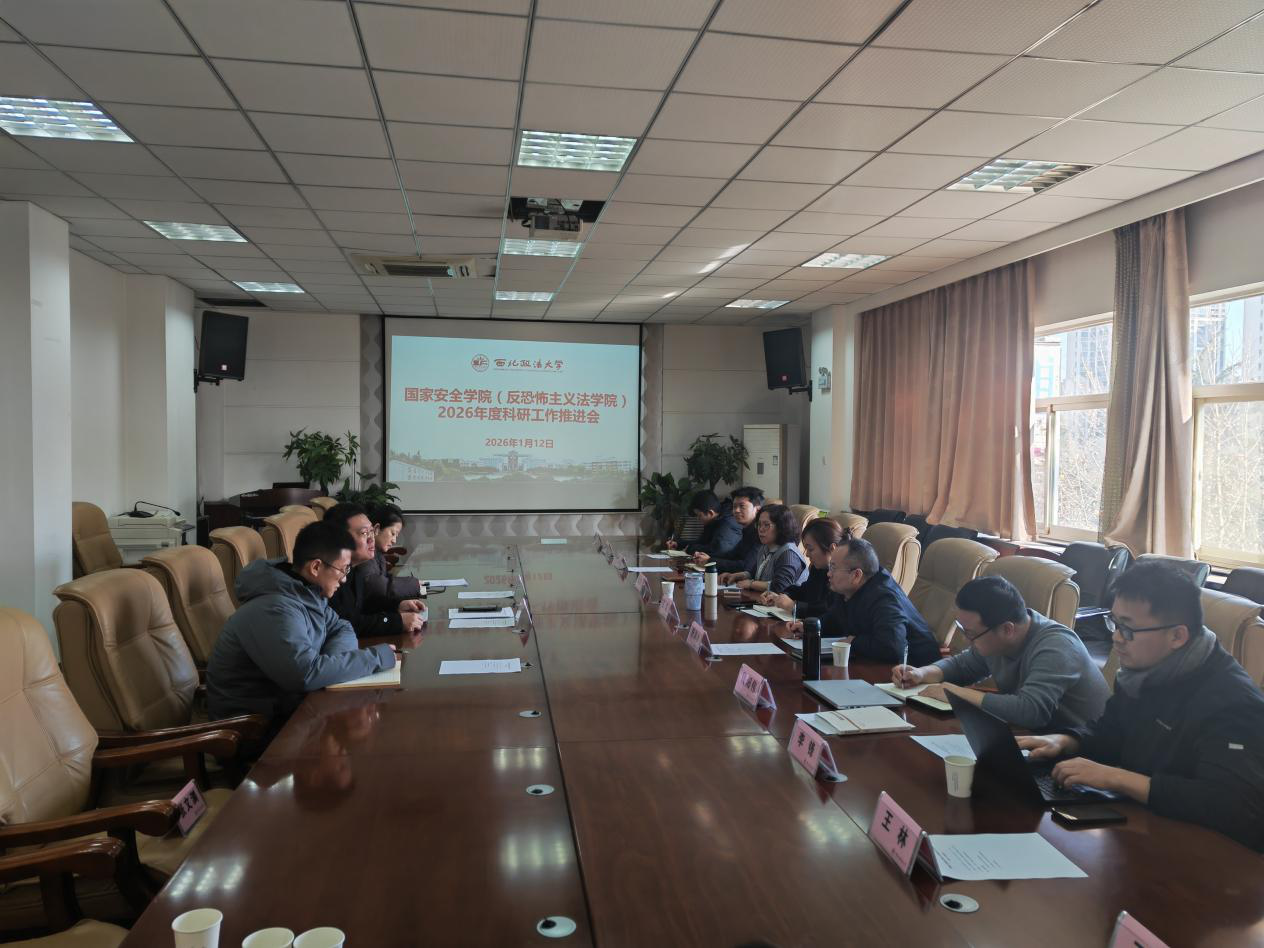 为进一步提升学院科研工作水平,1月12日上午,爱爱视频 (反恐怖主义法学院)召开科研工作推进座谈会。学校科研处处长倪楠及相关工作人员、院班子成员、科研骨干教师代表参会。会议由学院党委书记王聪主持。